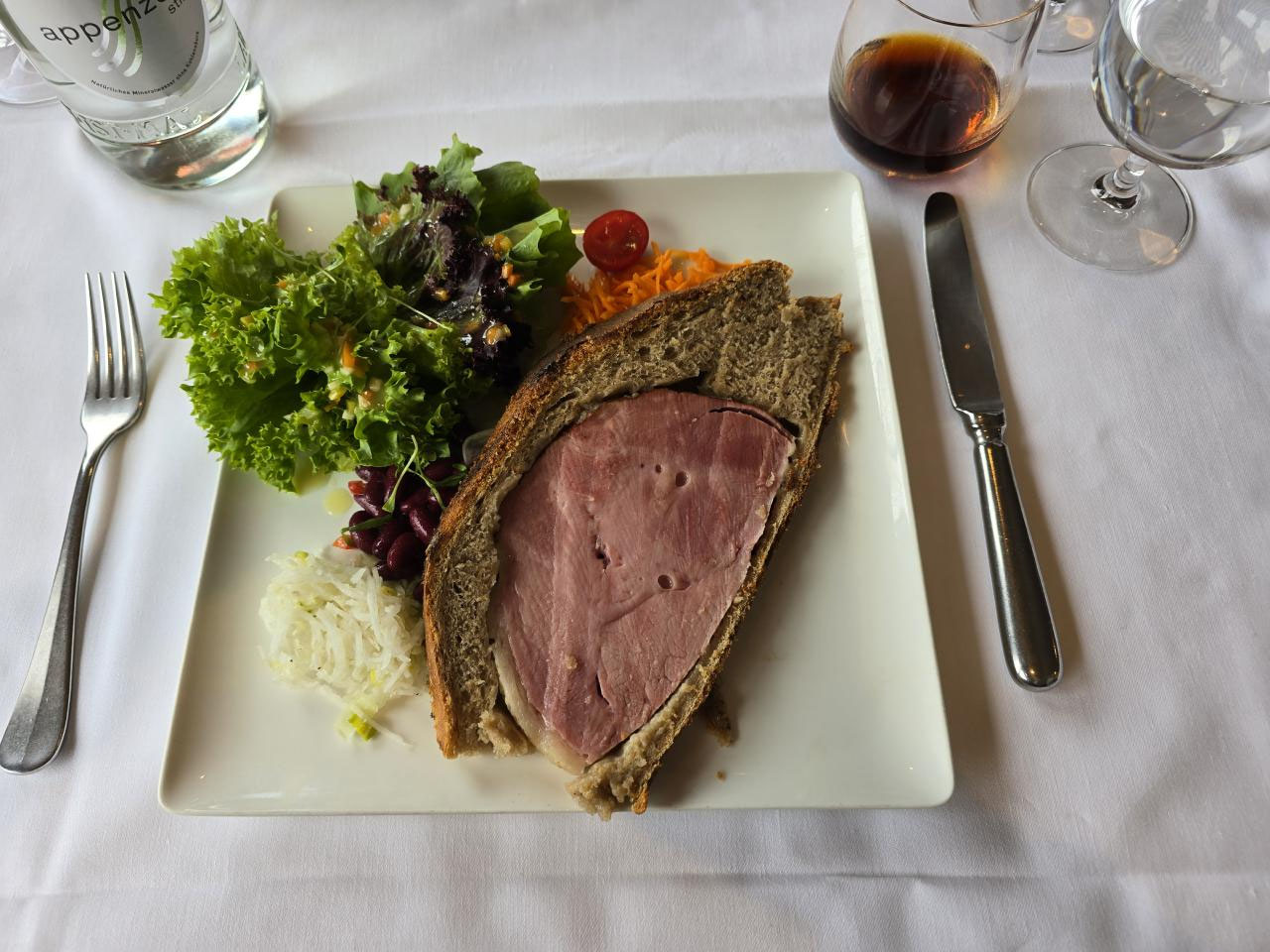 Anschliessend spazierten wir durch das nahegelegene Resonanzzentrum von Peter Roth zu Stump's Alpenrose. Hier wurde uns ein einfaches, aber vorzüglich zubereitetes Mittagessen serviert.