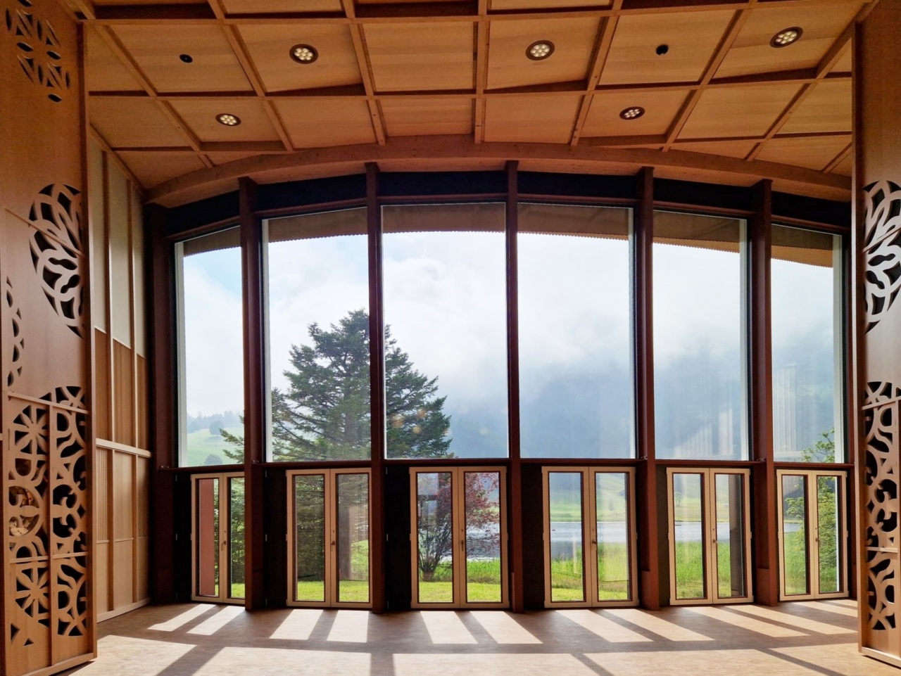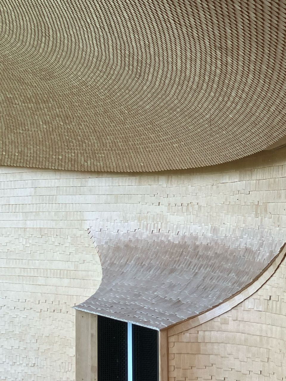 Nach einer ersten Stärkung durch Kaffee und Gipfeli erfuhren wir bei der Führung viel Spannendes über das aus viel einheimischem Holz gebauten und im Mai 2025 eröffneten Klanghaus, das als "begehbares Instrument" konzipiert wurde